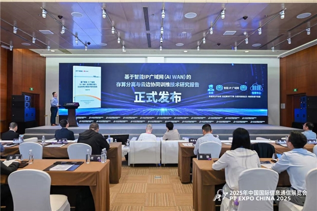 在成果发布环节,中国信通院联合产业单位共同发布了《基于智能IP广域网(AI WAN)的存算分离与云边协同技术研究报告》(2025),中国信通院技术与标准研究所互联网中心主任高巍对报告进行了解读。报告基于智能IP广域网提出存算分离与云边协同训推技术方案,回应企业在AI训练与推理中对数据安全和成本控制的迫切需求。