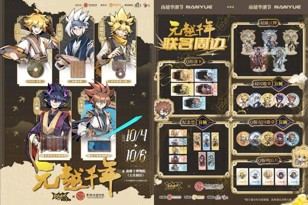 本届南越华潮节,《我家大师兄脑子有坑》与南越王博物院破壁联动,现场首发限定立牌、徽章、透卡等多款联动周边。