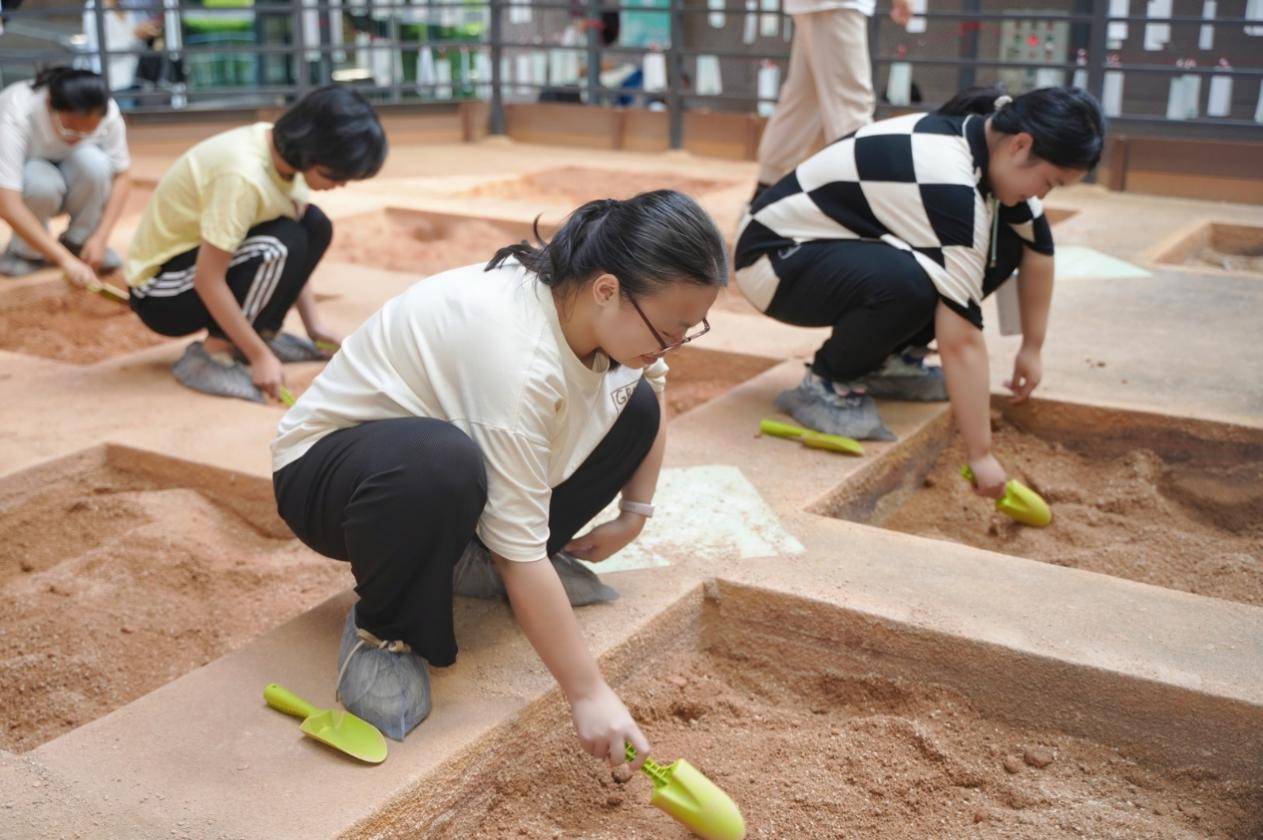 「南越寻坑」考古体验作为本次联动特别策划的环节,以免费预约形式限量开放,一经推出便吸引大量粉丝踊跃预约。活动将考古知识科普与模拟挖掘实践相结合,让参与者在亲手挖掘中体验跨越千年的寻宝乐趣,最后还获得南越王博物院或《我家大师兄脑子有坑》官方周边好礼,尽兴而归!
