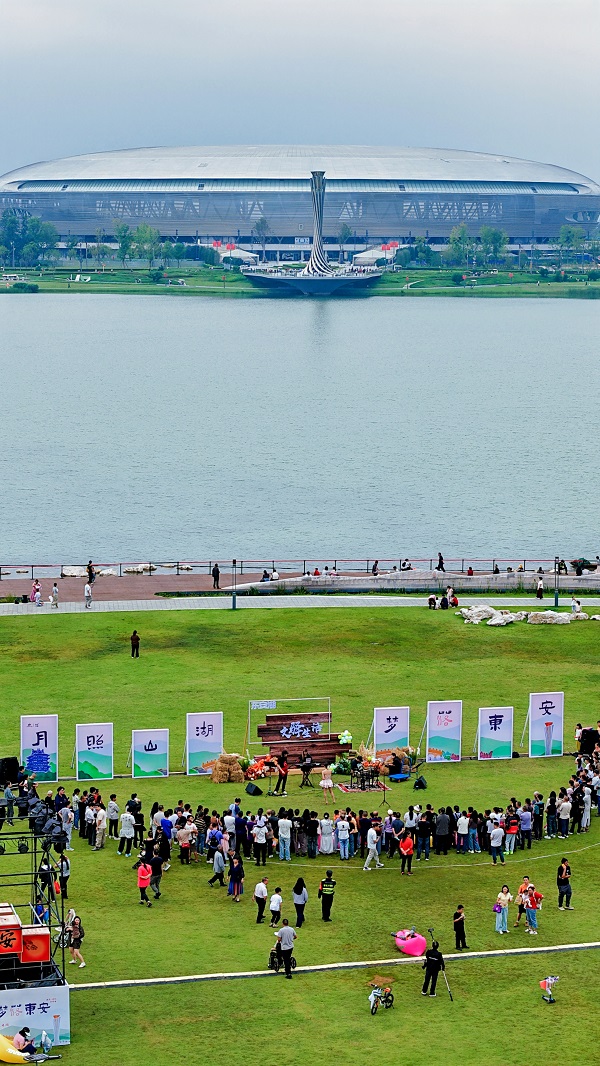 金秋时节,东安湖的潋滟湖光与诗意山水,随着央视镜头呈现,走进了全国观众的视野。镜头里,这里天光云影、秋色连波,不仅尽显自然与人文交融的生态画卷,更涌动着文旅融合的蓬勃活力——恰逢国庆中秋双节同辉,东安湖国际旅游度假区以“月照山湖?梦落东安”为主题,推出一系列精彩纷呈的节庆活动,成功吸引超过60万人次游客在此共度佳节,也让这片被央视点名的美景,真正转化为可游、可感、可沉浸的假日体验。除了“月照山湖?梦落东安”国庆中秋嘉年华这一核心亮点外,高水准演艺活动、特色文化展览及趣味运动赛事同步开展,从传统文化体验到现代潮流互动,从文艺演出到体育竞技,多维度丰富市民假日生活,为双节增添了别样风采。