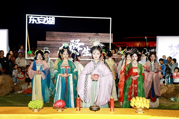 中秋当晚,拜月大典隆重登场,身着传统服饰的礼官依古礼陈祭器、诵祝文、奉时果,月光轻覆祭台,典雅仪式里满含对家国安宁、阖家团圆的祈愿;“嫦娥奔月”压轴亮相,演员着华裳翩跹,借光影似踏云而来,既显传统文化之韵,更以团圆意象为这场盛宴画下圆满句点。