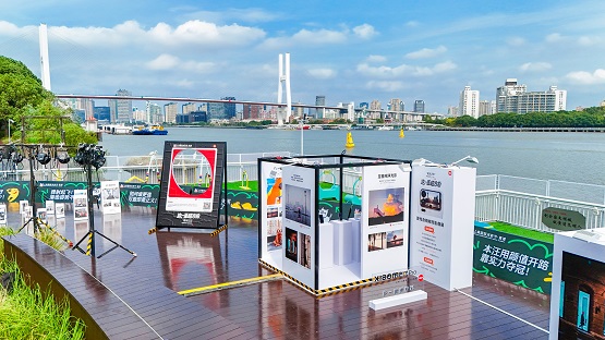 除展览外,小米还专门设置了“这一面超合拍”主题打卡框。该打卡点选址于视野开阔的滨江平台,参观者不仅可在此欣赏黄浦江景,还能以经典的南浦大桥为背景拍摄纪念照片。互动式设计增强了公众的参与感,不少游客在此停留合影,分享至社交媒体,使该点位成为国庆期间沪上热门的城市休闲地标。