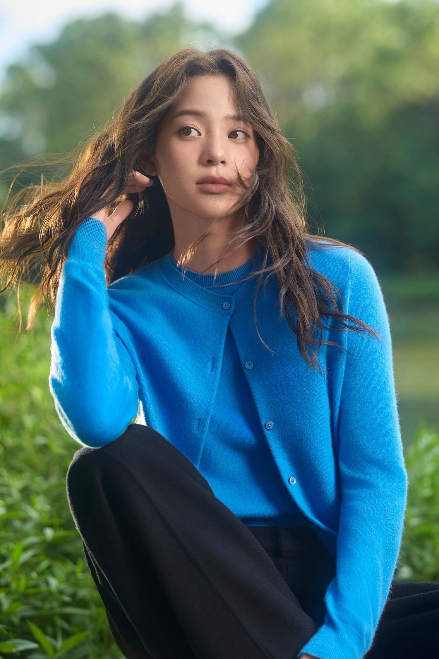 今年项目于户外自然场景中捕捉欧阳娜娜的灵动瞬间,时尚大片以电影感光影、软颗粒质感与动态构图,诠释“羊毛之美”的主题——她在林间漫步、水畔沉思,轻盈上身美丽诺羊毛制品,演绎多重羊髦风尚。