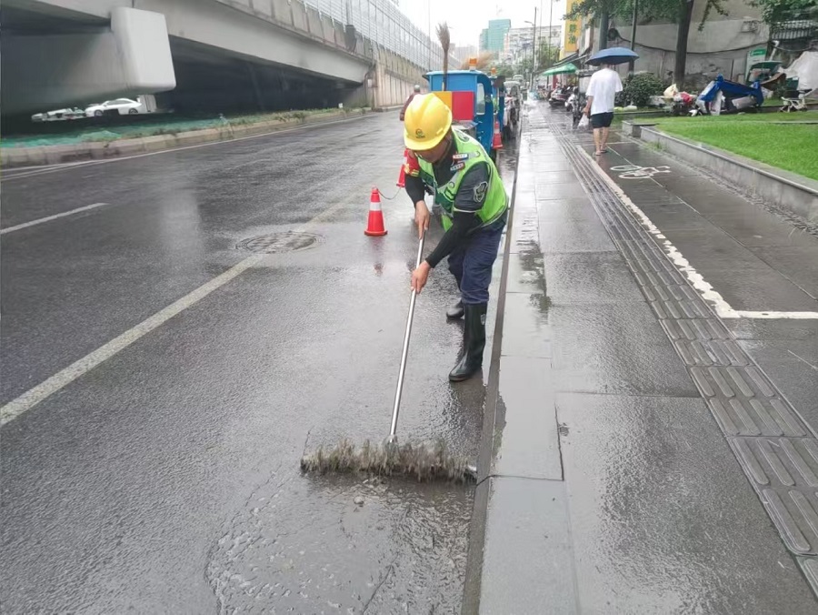 “演练不是‘走过场’,而是为了真遇到暴雨时出行路段积水、管道堵塞等紧急情况,能更快、更有序地处置!”参与演练的环卫公司负责人表示,此次演练30分钟内便完成积水排除、管道疏通、垃圾清理,下次再遇强降雨,我们能更从容的保障城市排水畅通。