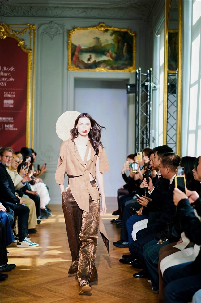 塞纳河畔的巴黎中国文化中心,2025中法时装周正迎来又一个高光时刻——中国服装协会组织的“中国服装好设计”联合发布秀灯光亮起,中国服装产业在此发声。本次联合秀参与品牌:雪豹、如月设计、时况WIDS X ERAKUANG、郭昊飞HAOFEIGUO惊艳亮相中法时装周,为法兰西的天空添上了来自东方的时尚元素与当代中国的创意力量。